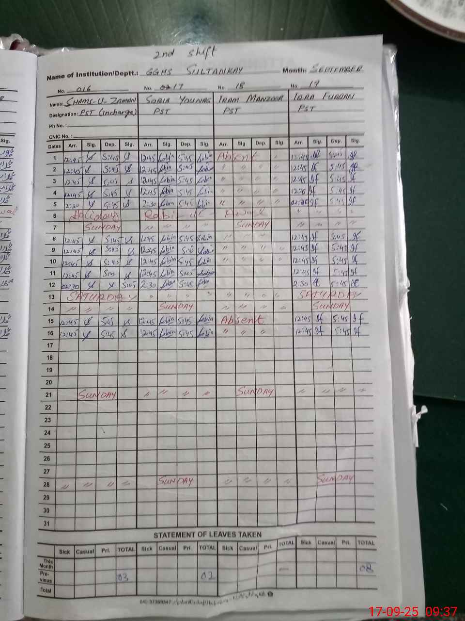 | 35**** | Ir**** Ma**** | 1 | 0 | 0 | 31 | 0 | 0 | 0 | 0 | 0 | 0 | Absent (Un-Authorized) | |