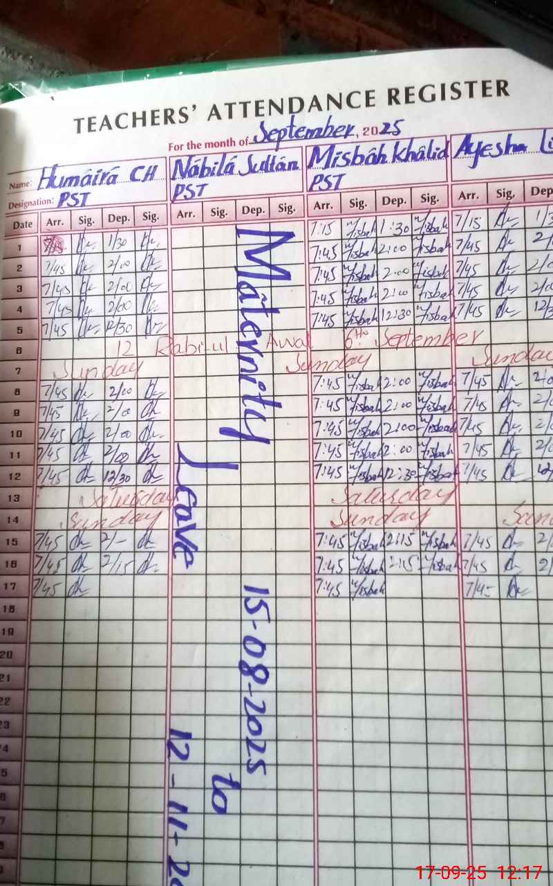 | 35**** | Na**** Su**** | PST | Regular | 0 | 0 | 0 | 0 | 0 | 0 | 0 | 0 | 0 | Maternity |