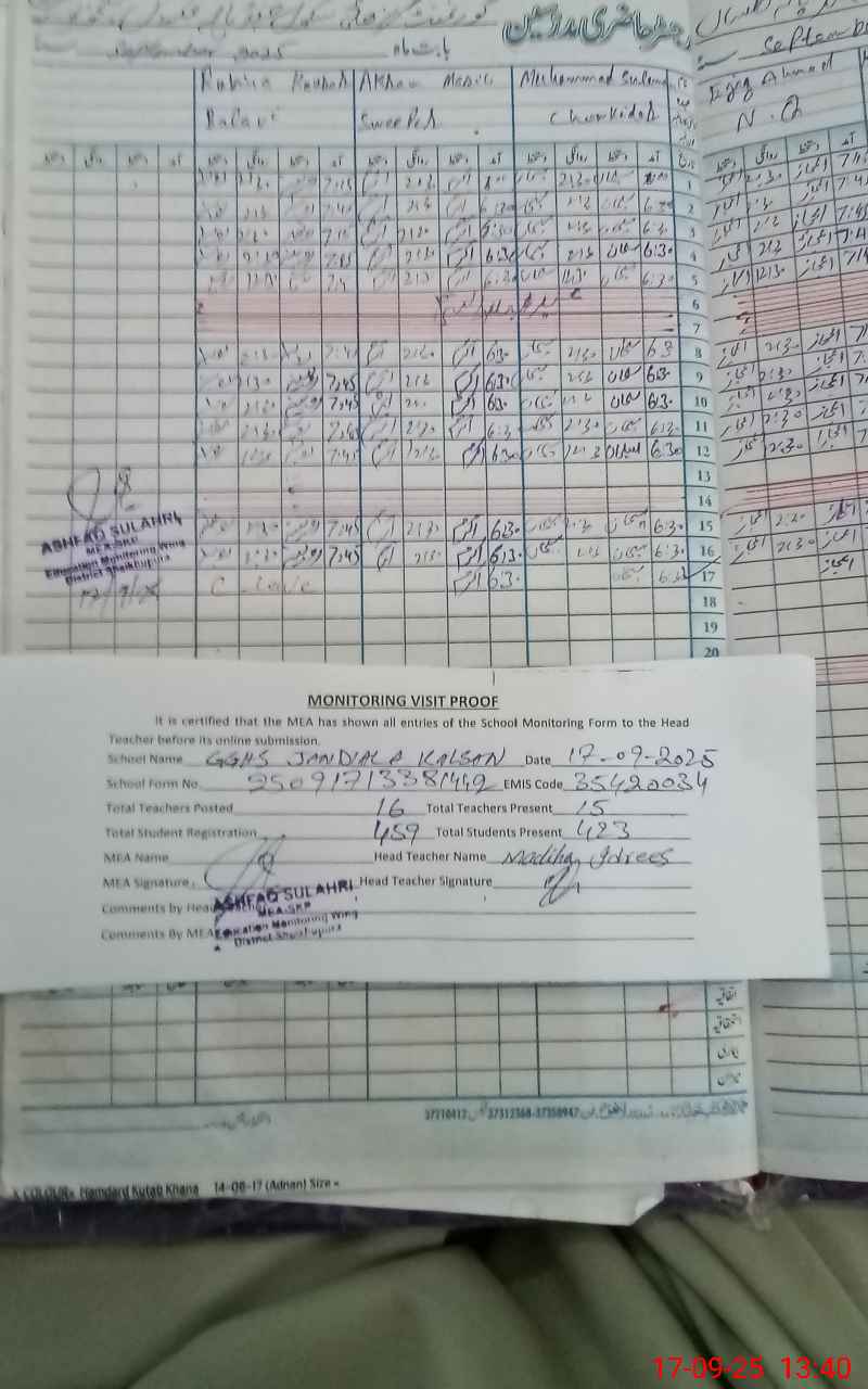 | EMIS Code: 35420034 | Name of School: GGHS JANDIALA KALSAN | |||