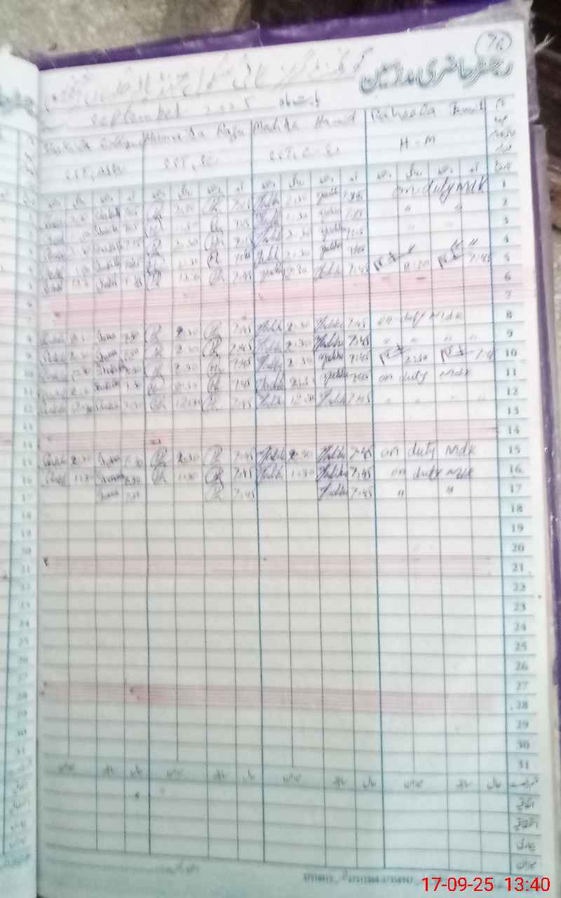 | CNIC | Full Name | Designation | R/C | Absence During Last Calender Month |