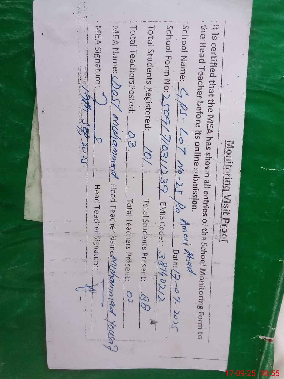 | EMIS Code: 38140212 | Name of School: GPS LOT NO 25 PO AMEER ABAD | |||