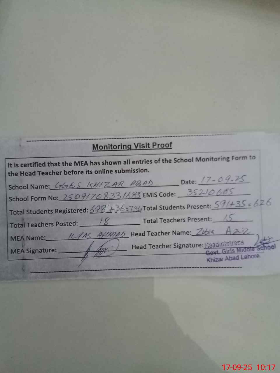 | EMIS Code: 35210605 | Name of School: GGES KHIZAR ABAD | |||