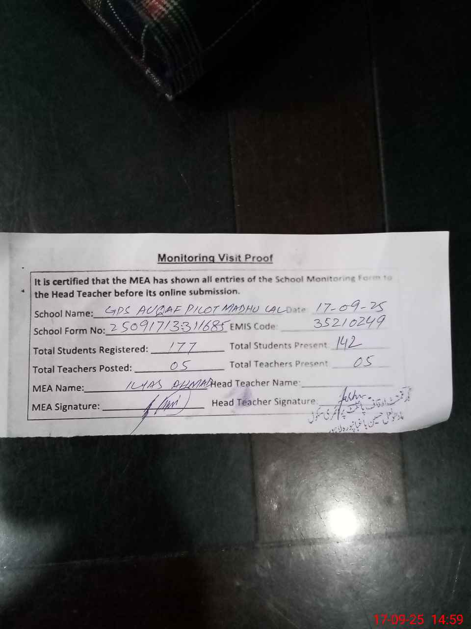 | EMIS Code: 35210249 | Name of School: GPS AUQAF PILOT MADHU LAL HUSSAIN | |||