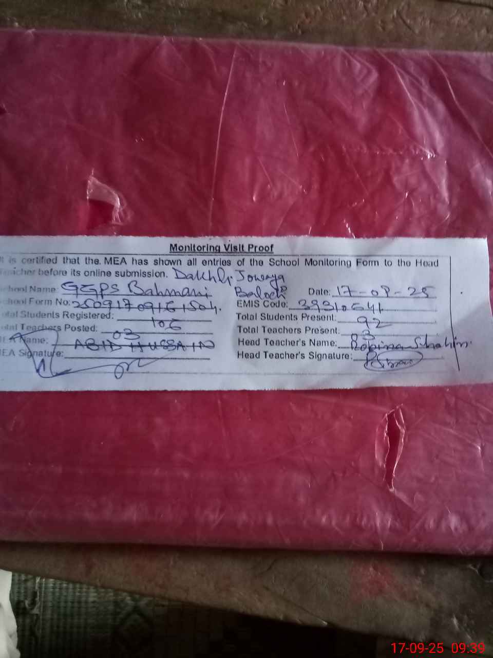| EMIS Code: 39310641 | Name of School: GGPS BAHMANI DAKHLI JOWAYA BALOCH | |||