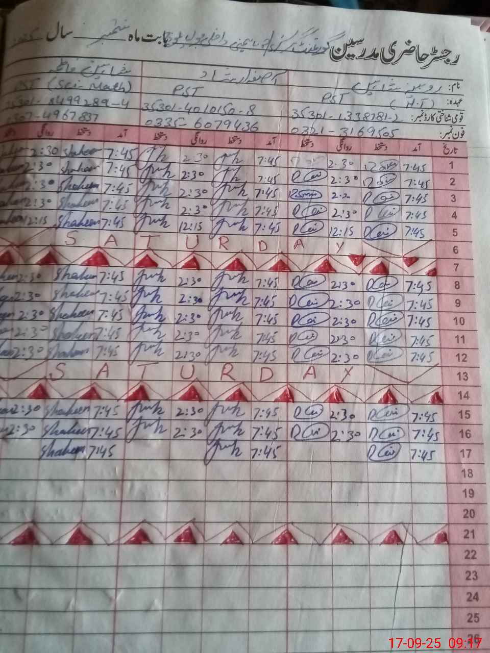 | Name: RO**** SH**** Designation: (School Headmaster's/Headmistress's) PST Phone/Cell Number: 03**** |