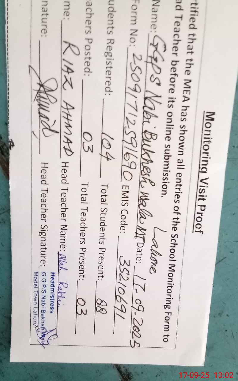 | EMIS Code: 35210691 | Name of School: GGPS NABI BUKHSH WALA | |||