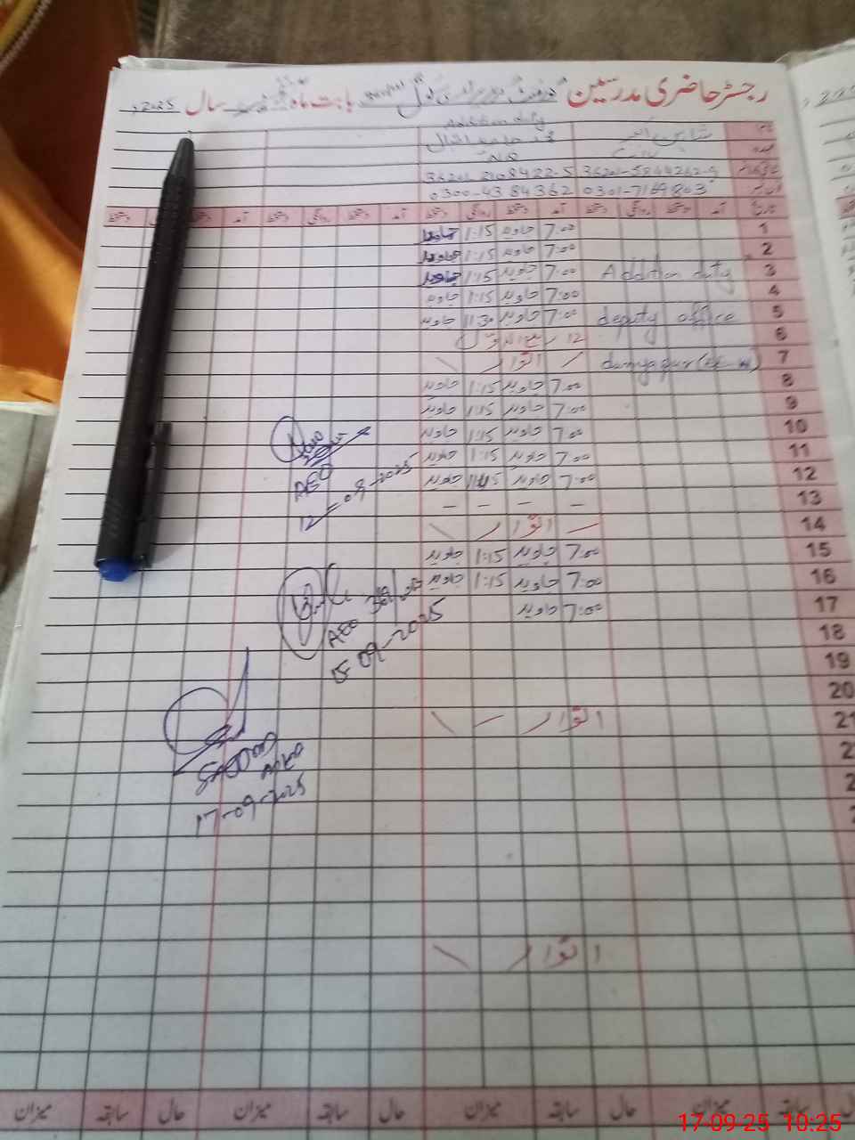 | Name: IR**** SH**** Designation: (School Headmaster's/Headmistress's) PTC Phone/Cell Number: 03**** |