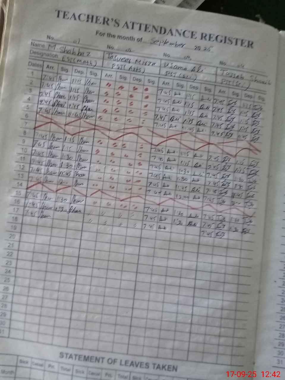 | Name: MU**** SH**** Designation: (School Headmaster's/Headmistress's) SESE (MATH) Phone/Cell Number: 03**** |