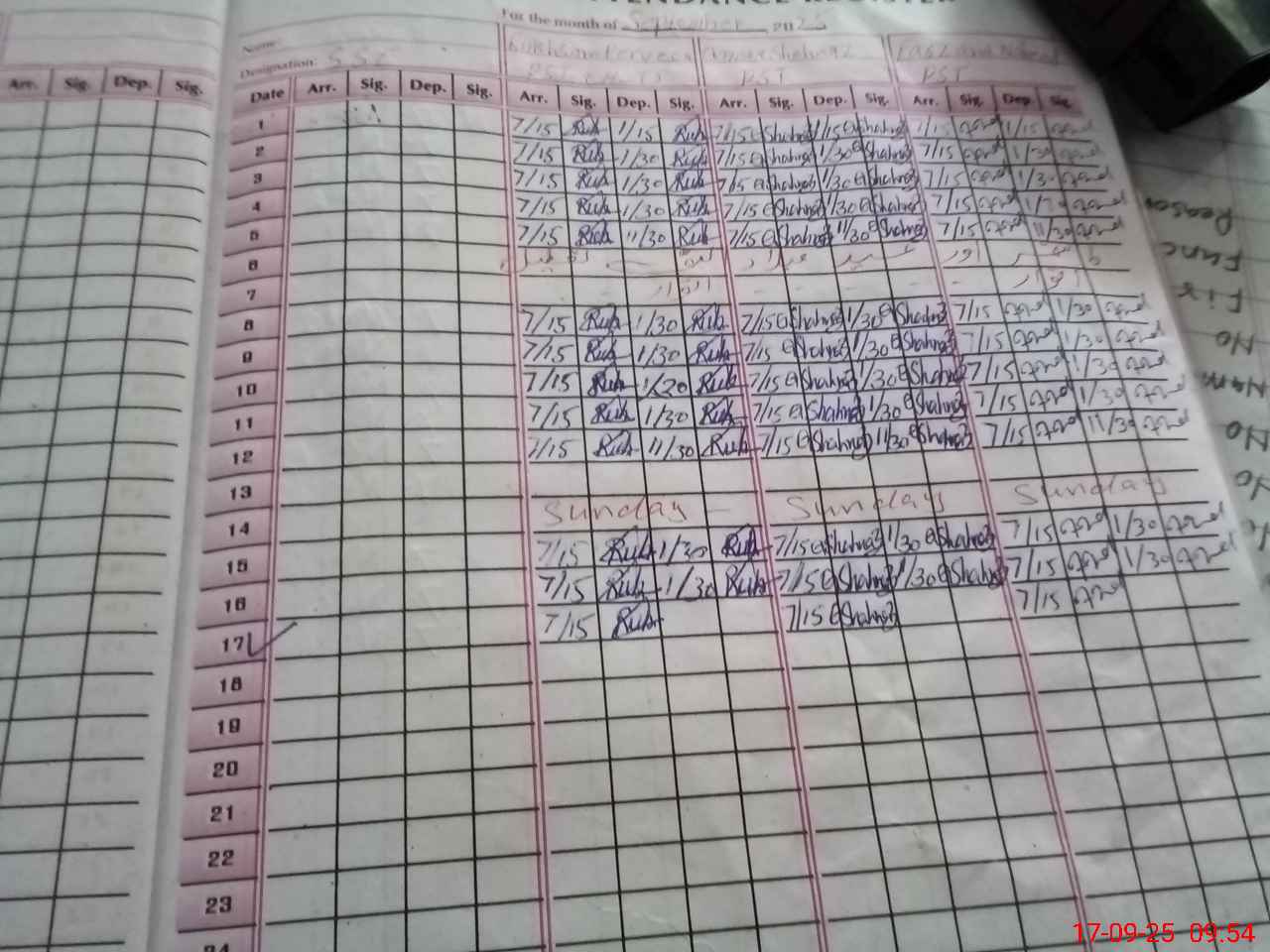 | CNIC | Full Name | Designation | R/C | Absence during last cal. month |