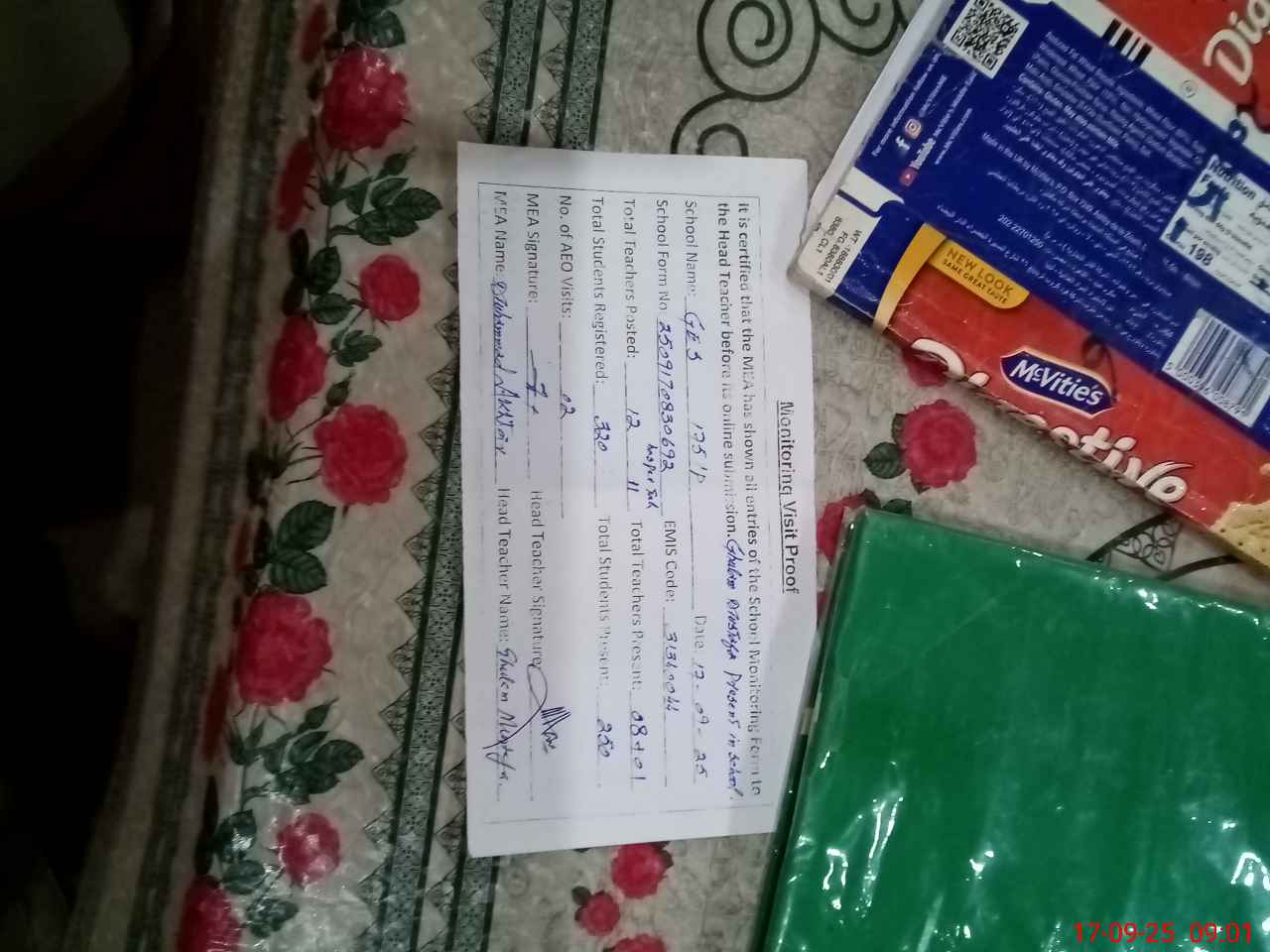 | Attendance Register | Head Teacher | MEA with School | Visit Proof |