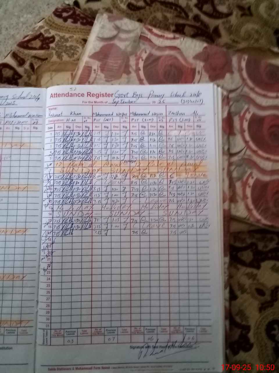 | Name: Re**** Kh**** Designation: (School Headmaster's/Headmistress's) PST Phone/Cell Number: 03**** |