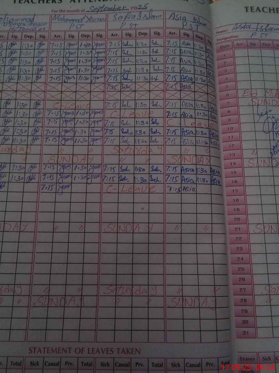 | Leave | Duty | Absent | Maternity | Medical | Ex- Pak |