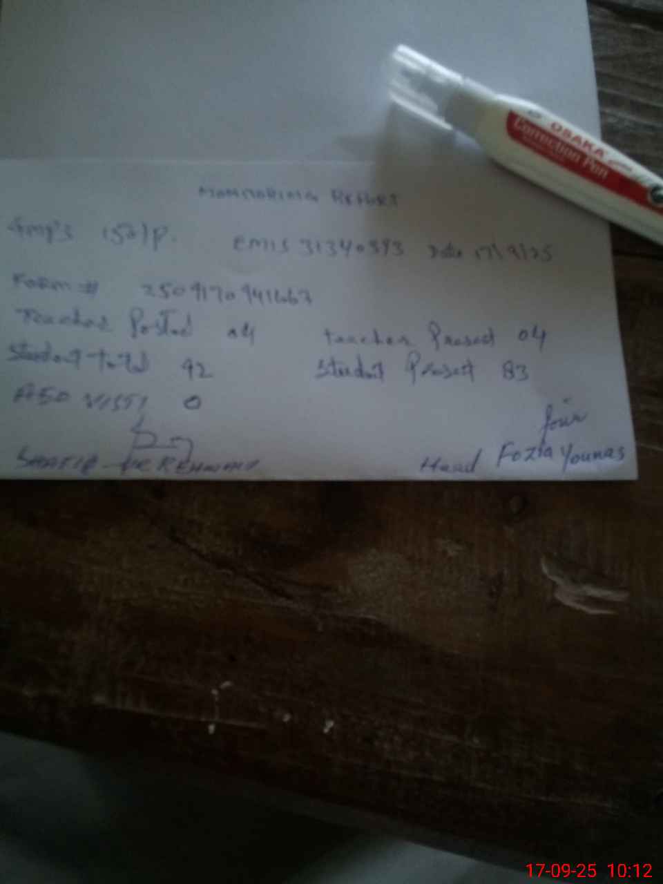 | Name: Fo**** Yo**** Designation: (School Headmaster's/Headmistress's) PST Phone/Cell Number: 03**** |