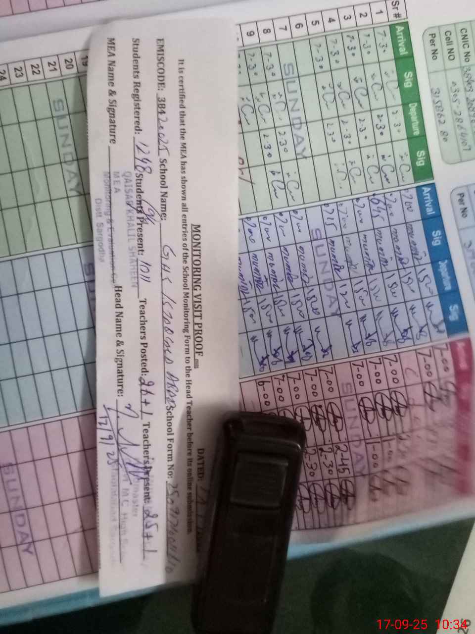 | Attendance Register | Head Teacher | MEA with School | Visit Proof |