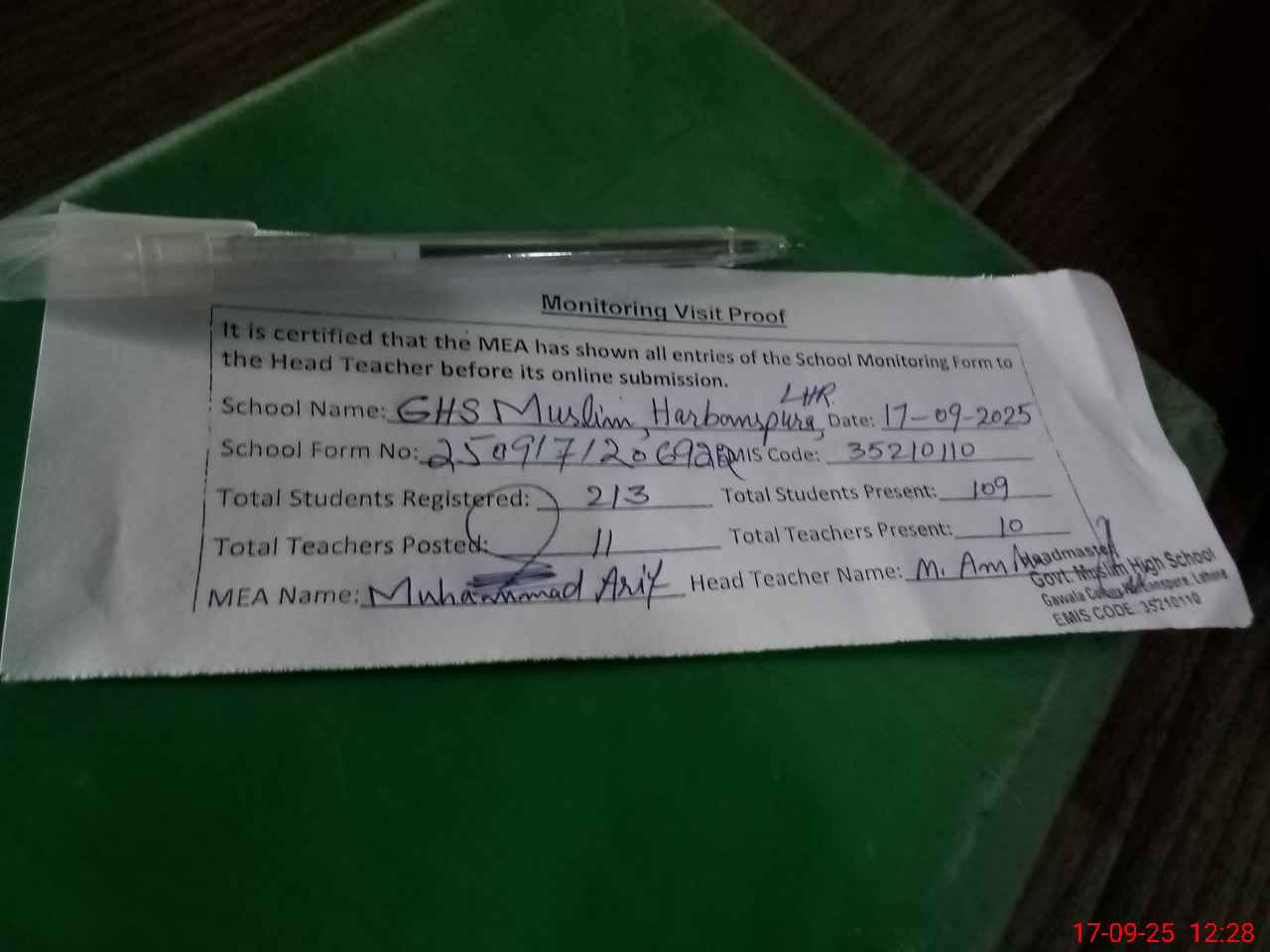 | EMIS Code: 35210110 | Name of School: GHS MUSLIM HARBANS PURA(Newly upgraded) | |||