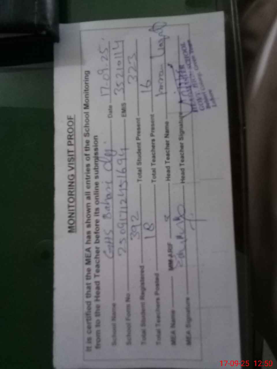 | Certified that this School was Inspected by the Undersigned MEA/DMO Today and the Information Stated Above is as Per Record. | |||||