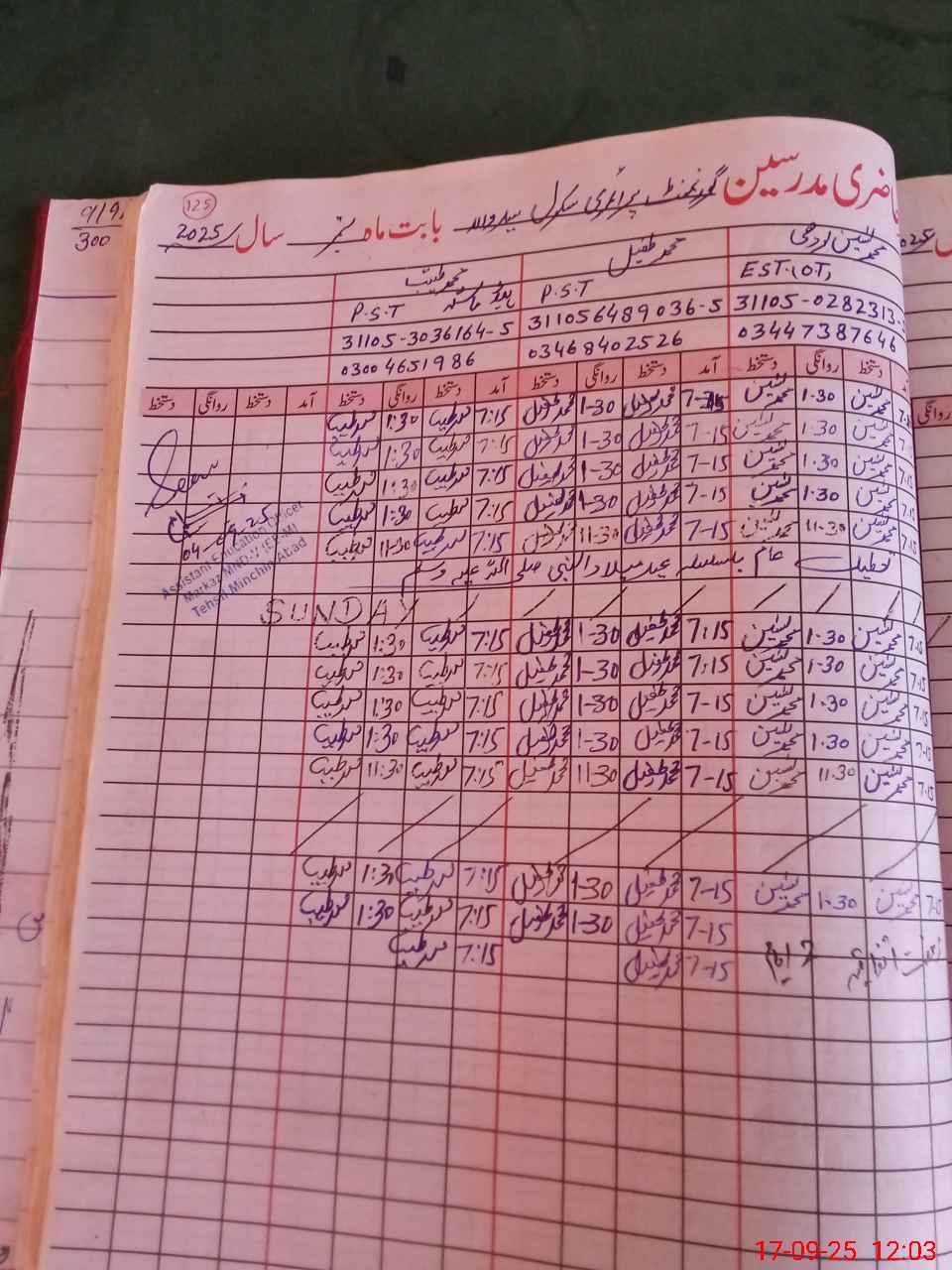 | Name: MU**** Ta**** Designation: (School Headmaster's/Headmistress's) P S T Phone/Cell Number: 03**** |