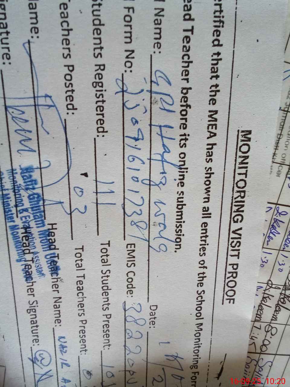 | EMIS Code: 38220050 | Name of School: GPS HAFIZ WALA | |||