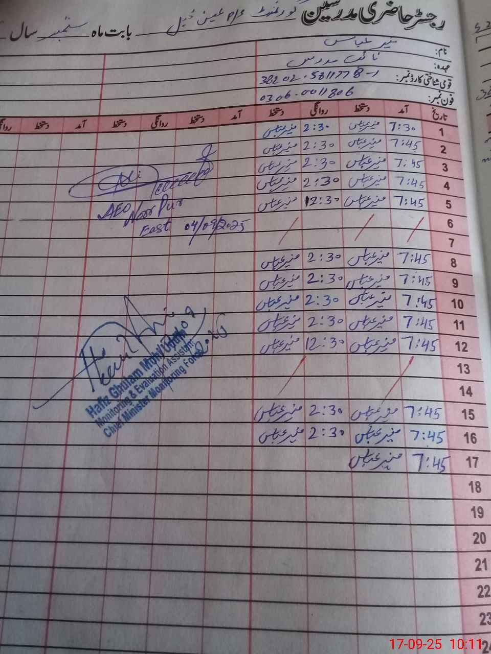 | Name: As**** Ul**** Designation: (School Headmaster's/Headmistress's) PST Phone/Cell Number: 03**** |