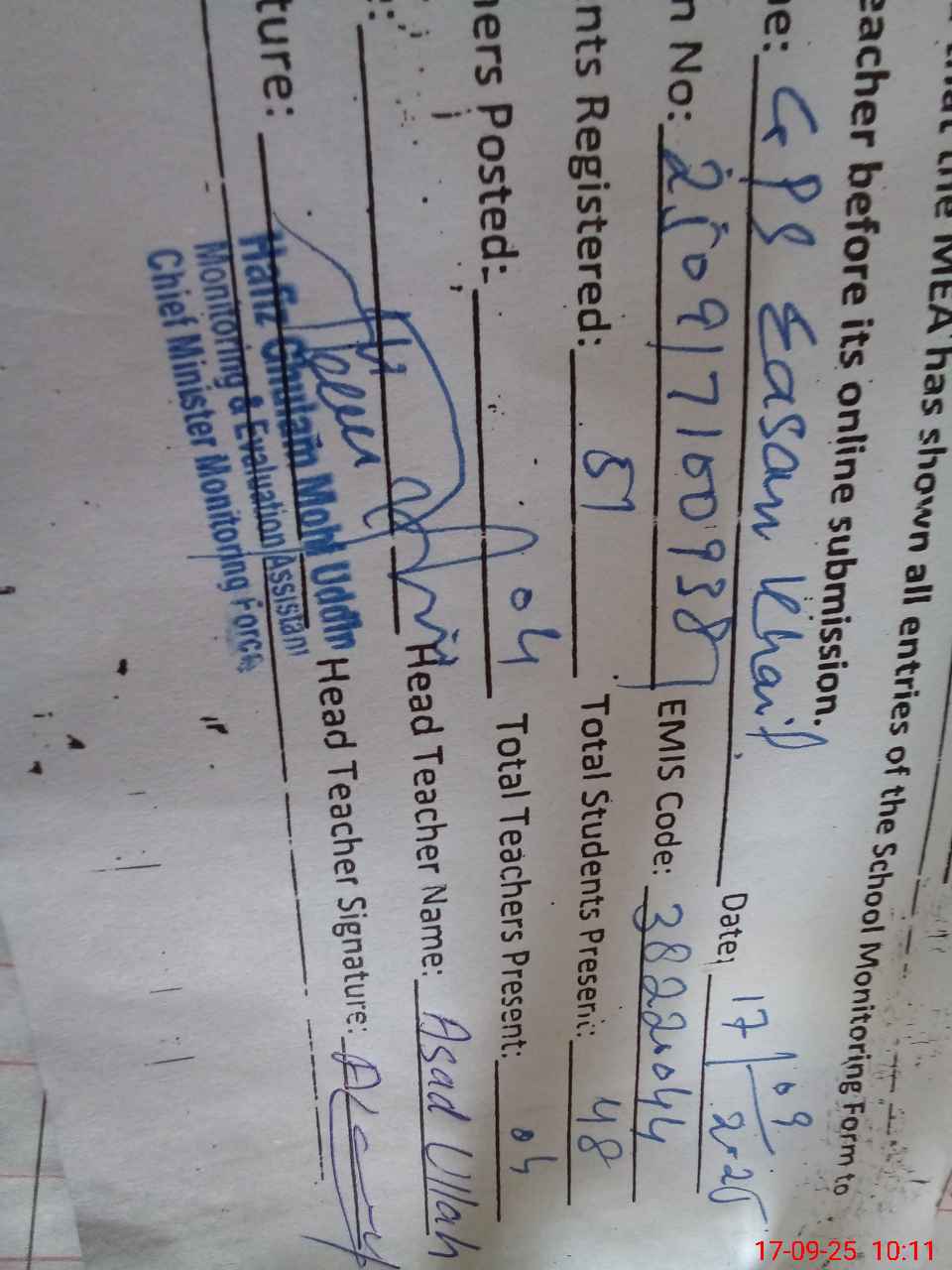 | EMIS Code: 38220044 | Name of School: GPS EASAN KHAIL | |||
