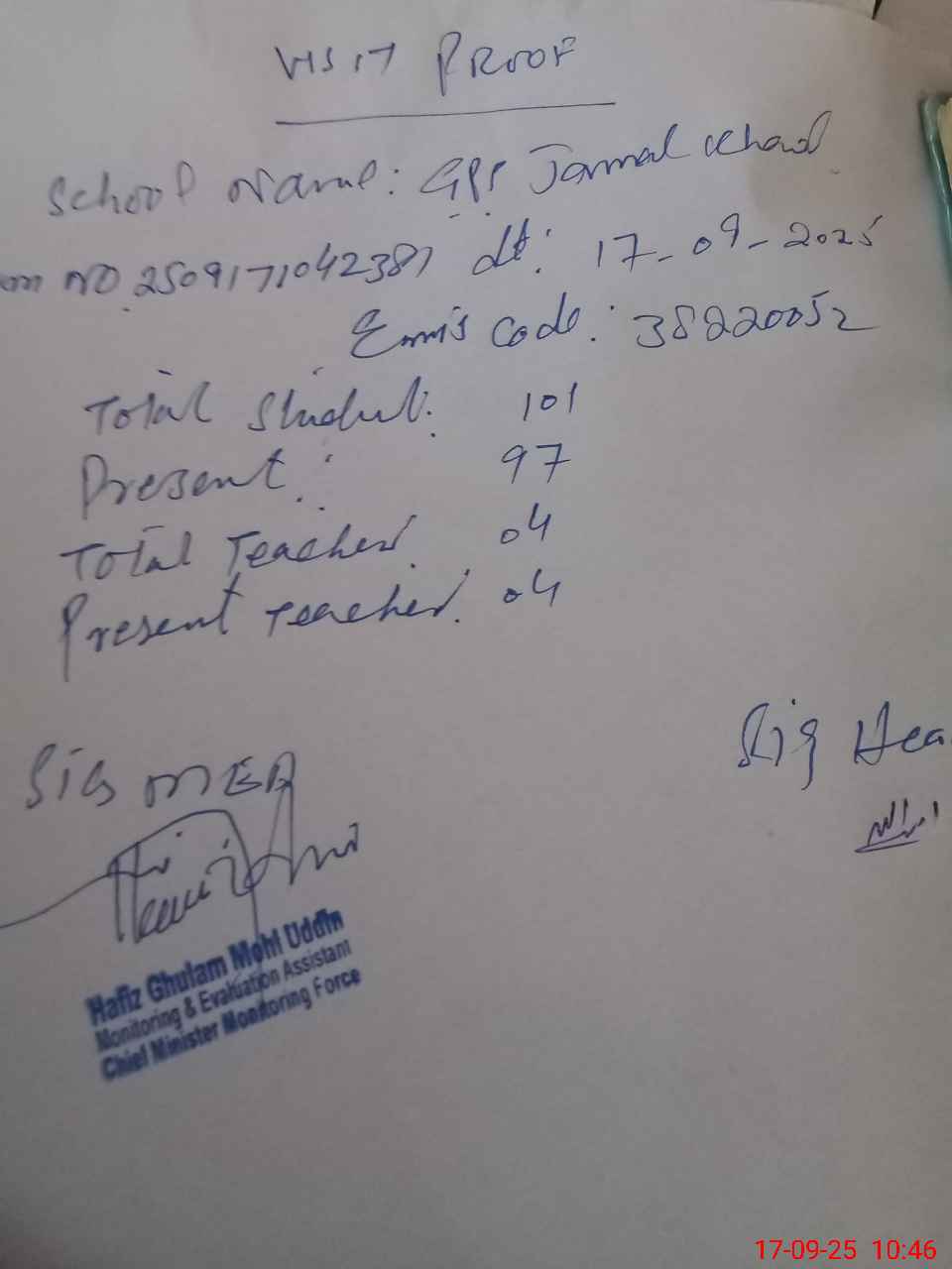 | EMIS Code: 38220052 | Name of School: GPS JAMAL KHAIL | |||