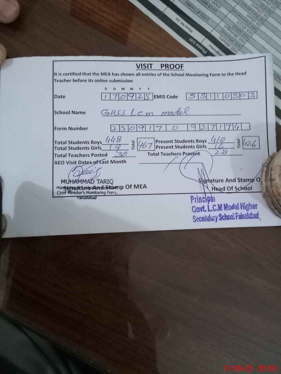 | EMIS Code: 33110303 | Name of School: GHSS LCM MODEL FAISALABAD | |||