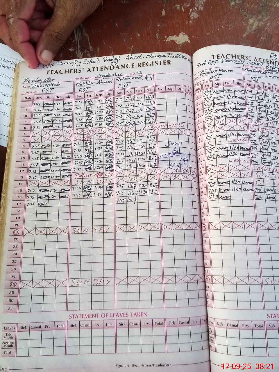 | Name: HA**** ULL**** Ta**** Designation: (School Headmaster's/Headmistress's) PST/PTC/JV Phone/Cell Number: 03**** |