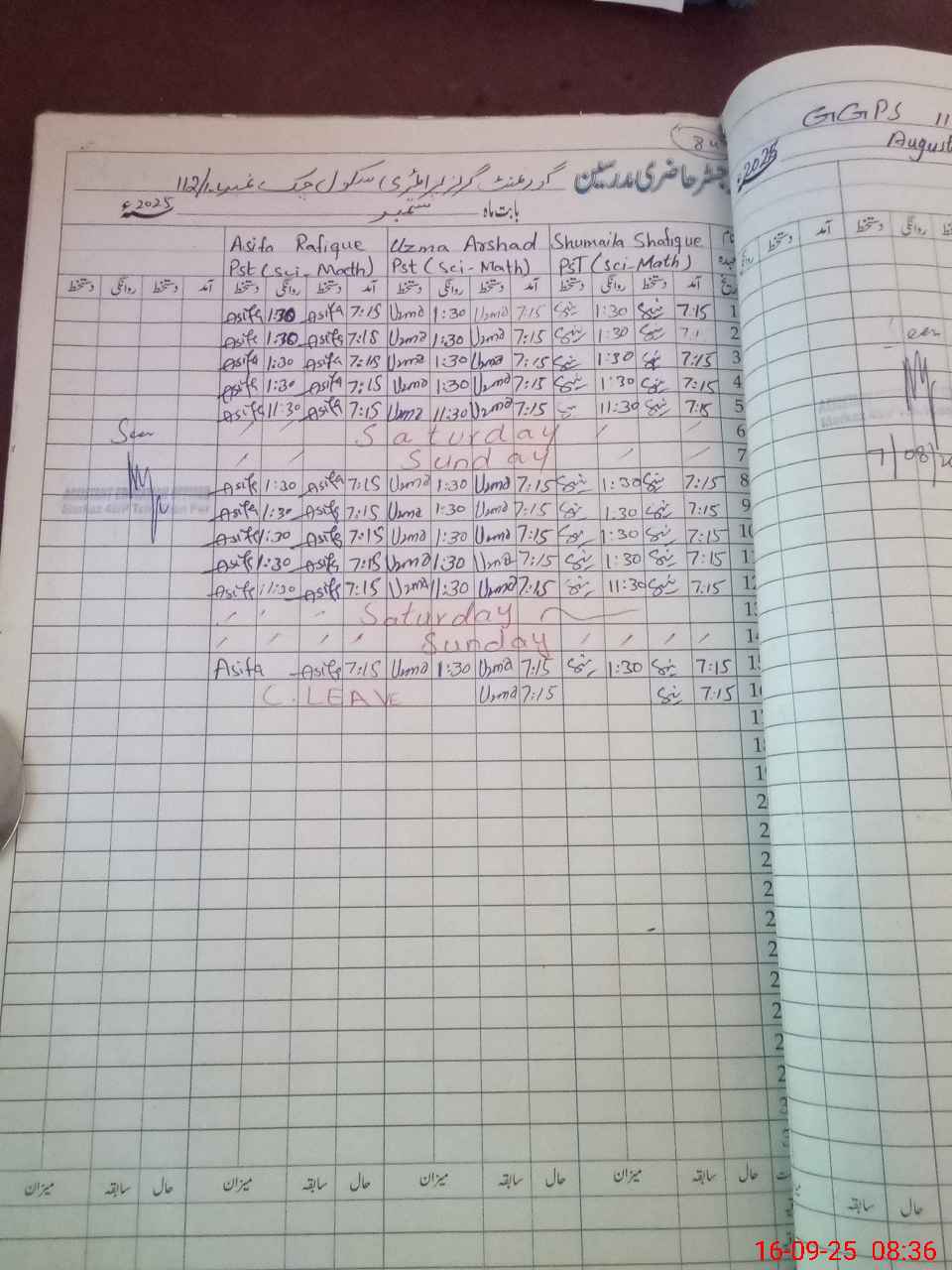 | Leave | Duty | Absent | Maternity | Medical | Ex- Pak |