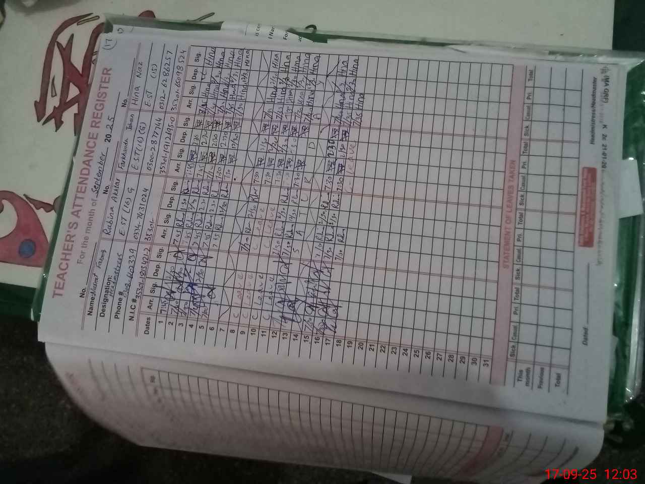 | Name: NU**** FA**** Designation: (School Headmaster's/Headmistress's) S.S.T.(Arts) Phone/Cell Number: 03**** |