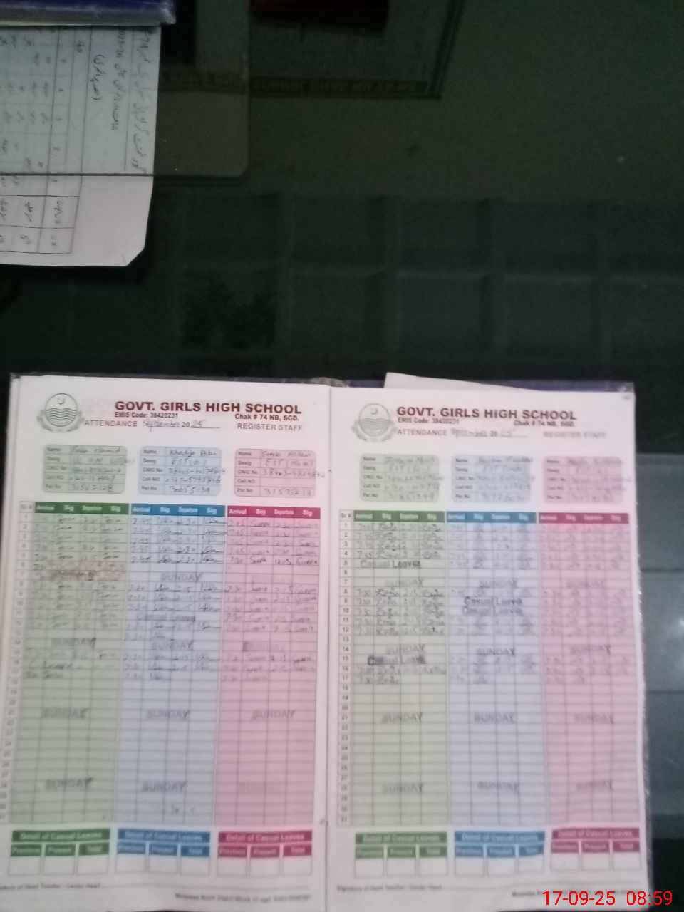 | CNIC | Full Name | Designation | R/C | Absence During Last Calender Month |