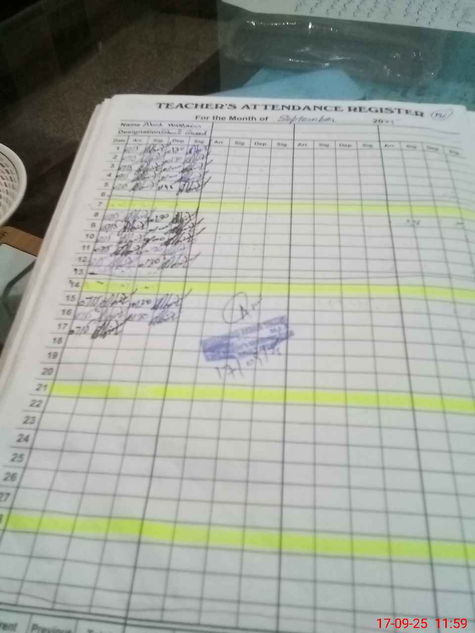 | CNIC | Full Name | Designation | R/C | Absence during last cal. month |