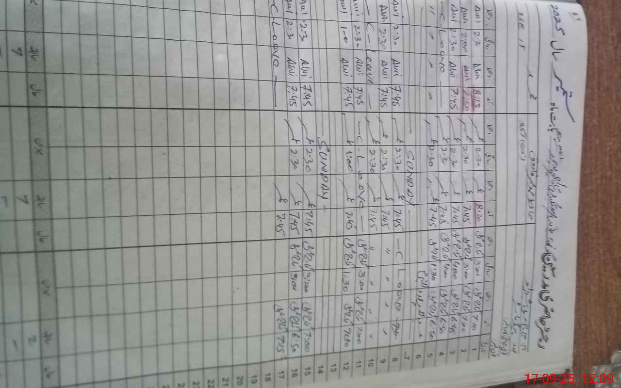 | Remarks (Use Separate Page if Required): Light was not functional due to weekly load shading NSB REGISTER NOT AVAILABLE FTF data was not correct for the month of August 2025 | |||||