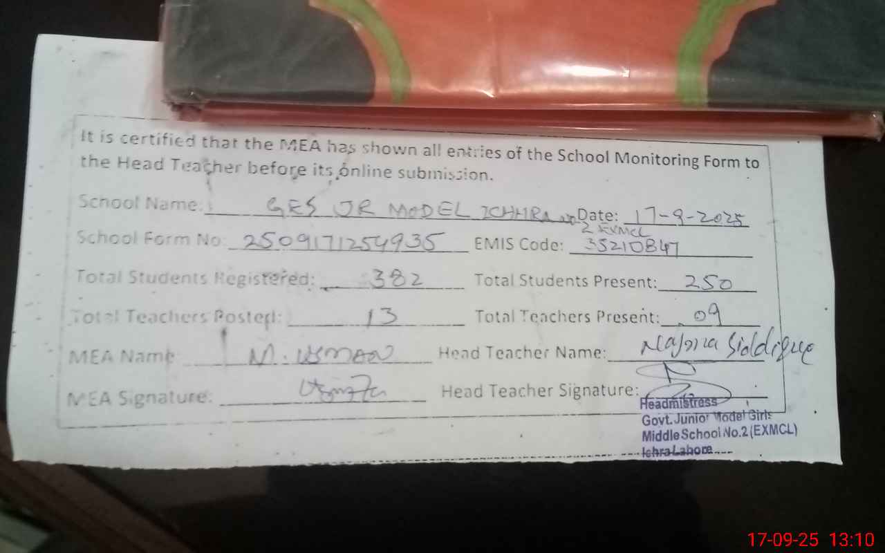 | EMIS Code: 35210847 | Name of School: GES JR.MODEL ICHHRA NO. 2 (EX-MCL) | |||