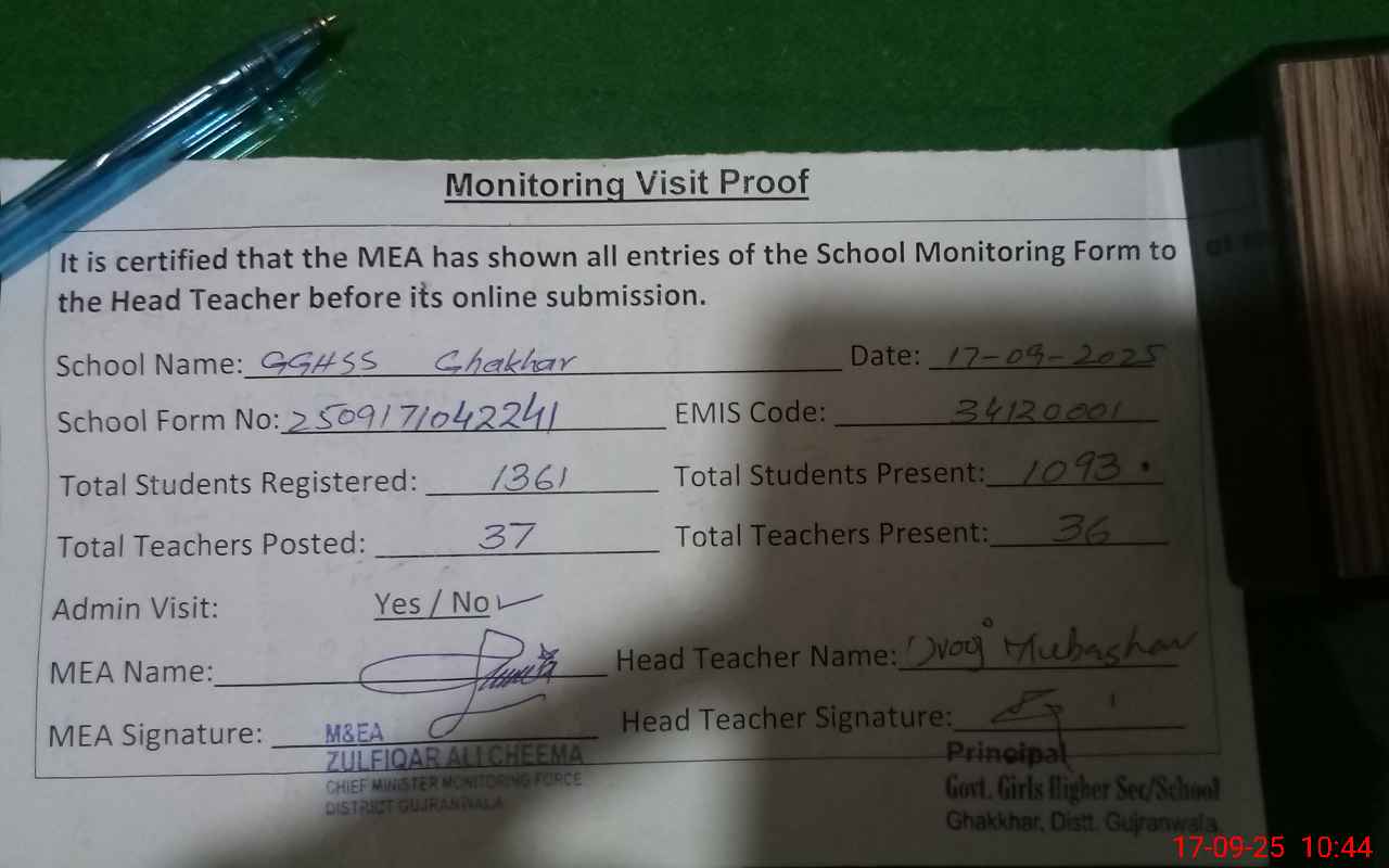 | EMIS Code: 34120001 | Name of School: GGHSS GHAKHAR | |||