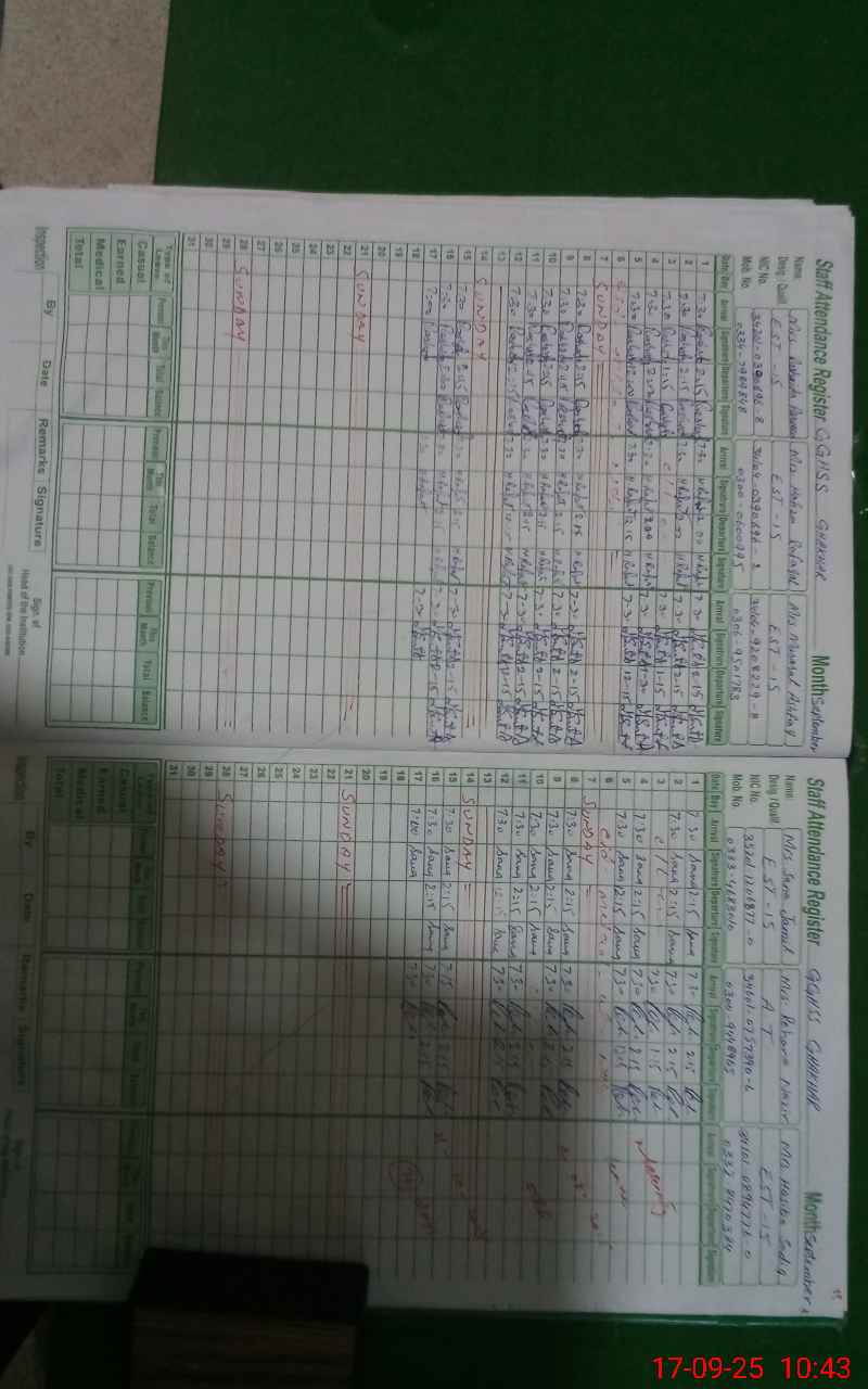 | CNIC | Full Name | Designation | R/C | Absence During Last Calender Month |