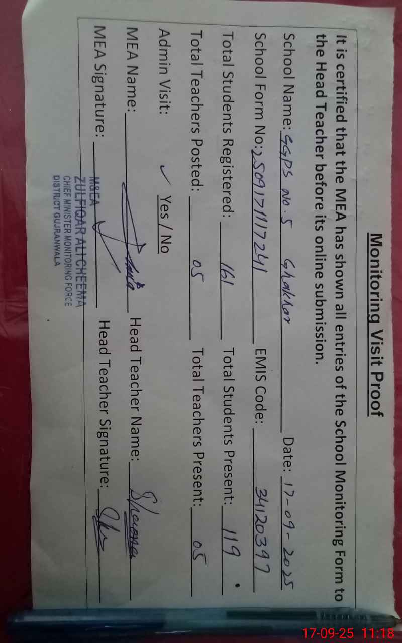 | EMIS Code: 34120397 | Name of School: GGPS GHAKHAR NO.5 | |||