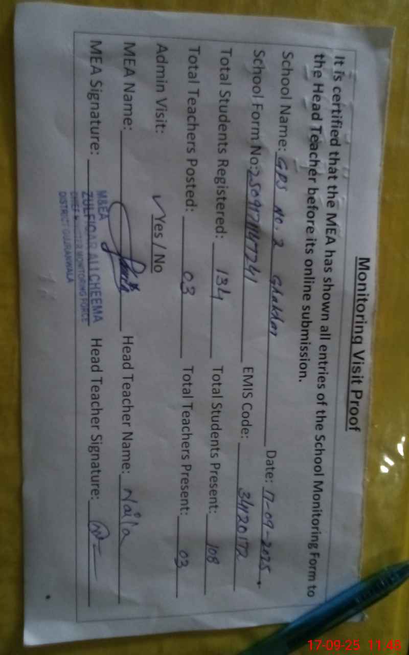 | EMIS Code: 34120172 | Name of School: GPS GHAKHAR NO.2 | |||