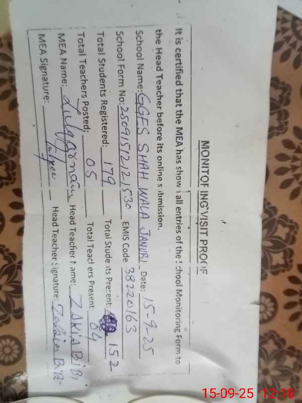 | EMIS Code: 38220163 | Name of School: GGES SHAH WALA JANUBI | |||