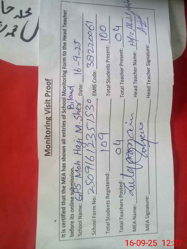 | EMIS Code: 38220061 | Name of School: GPS MOHALLA HAJI MUHAMMAD SHER BILAND | |||