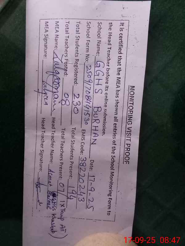 | EMIS Code: 38220243 | Name of School: GGHS BURHAN | |||