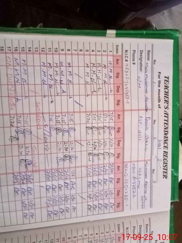 | Name: Na**** Designation: (School Headmaster's/Headmistress's) SST Phone/Cell Number: 03**** |