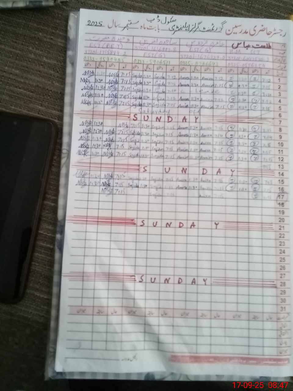| Name: Ta**** Ab**** Designation: (School Headmaster's/Headmistress's) Headmistress Phone/Cell Number: 03**** |
