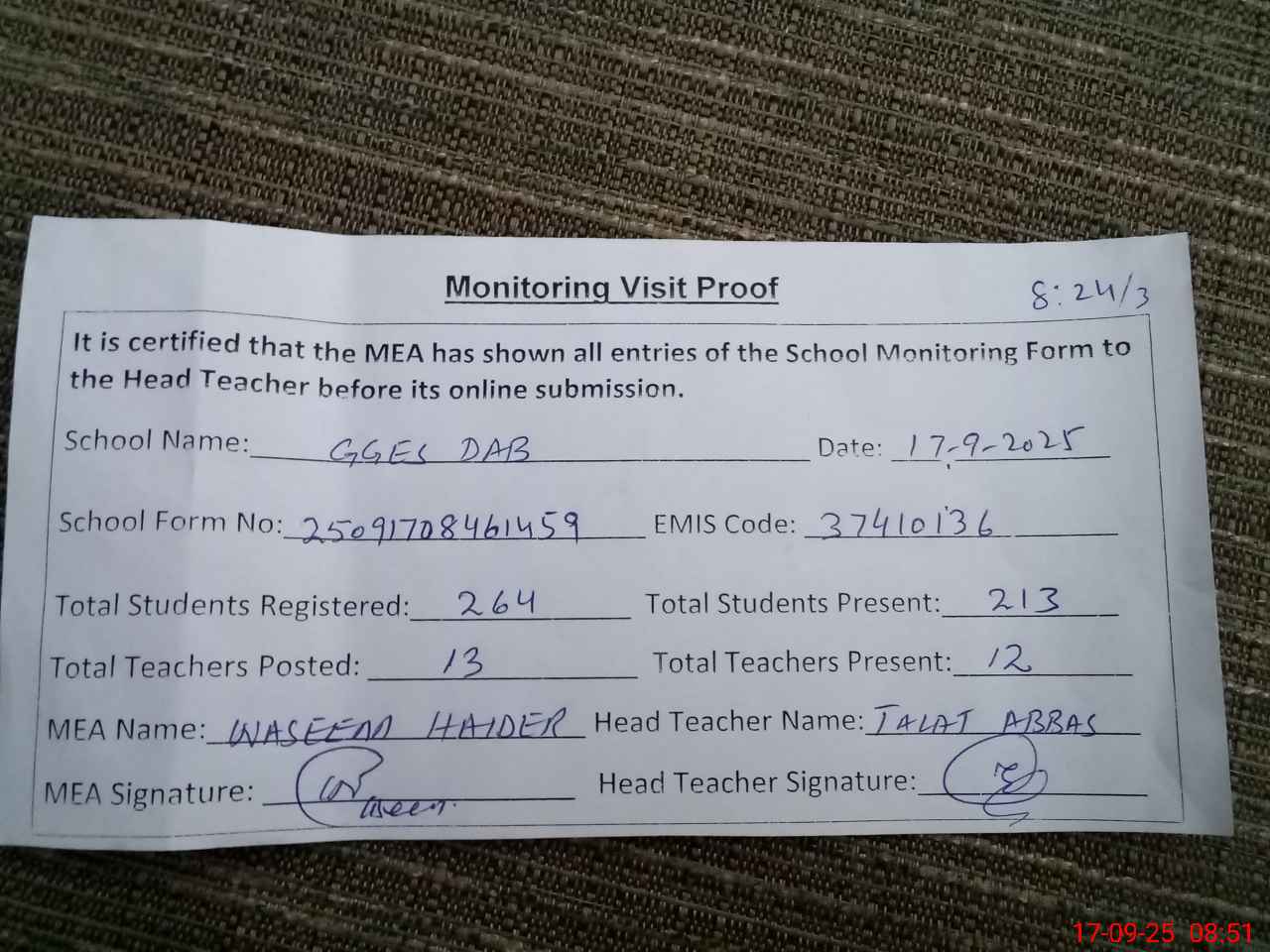 | Certified that this School was Inspected by the Undersigned MEA/DMO Today and the Information Stated Above is as Per Record. | |||||