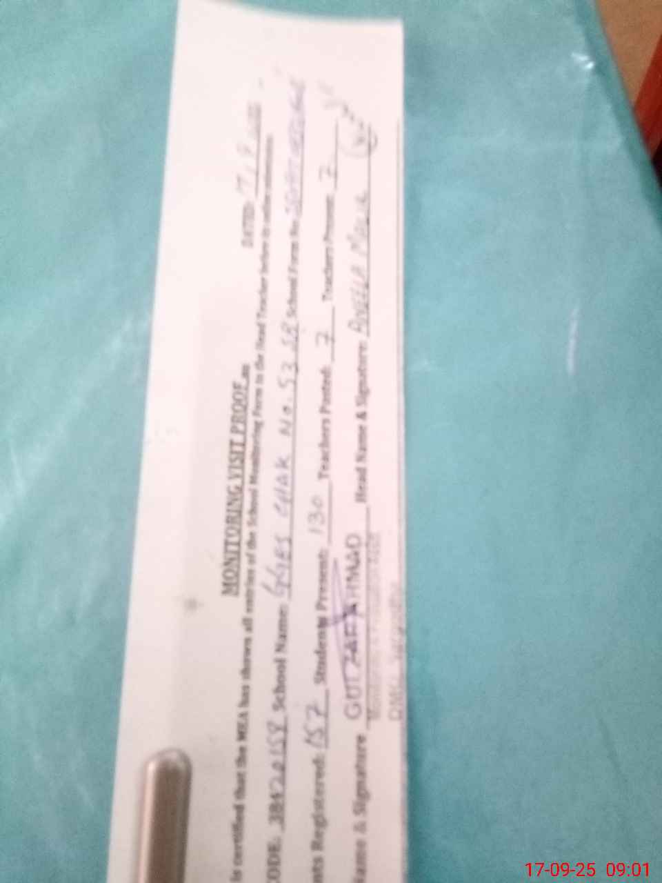 | Attendance Register | Head Teacher | MEA with School | Visit Proof |