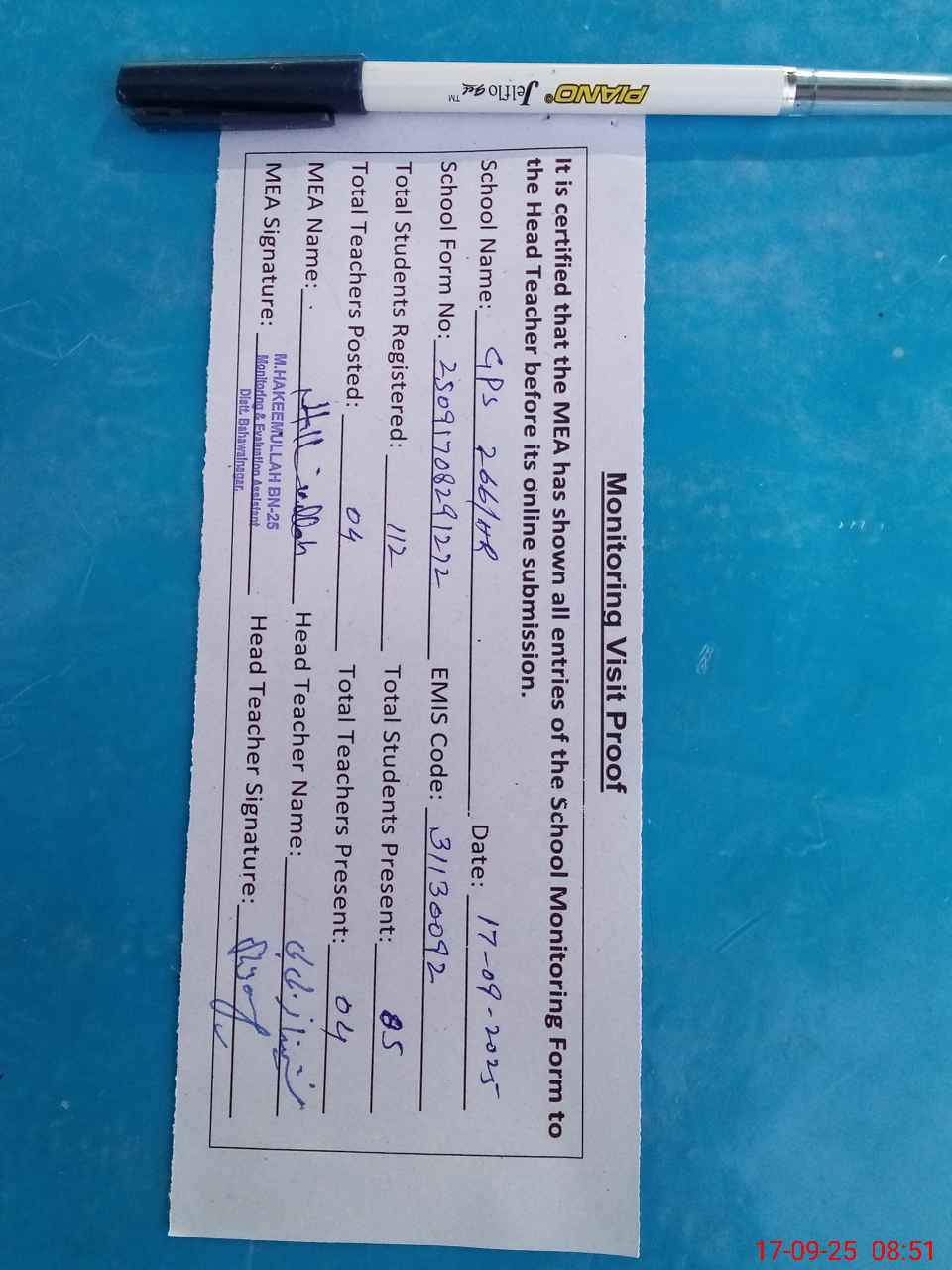 | EMIS Code: 31130092 | Name of School: GPS CHAK NO.266/HR | |||