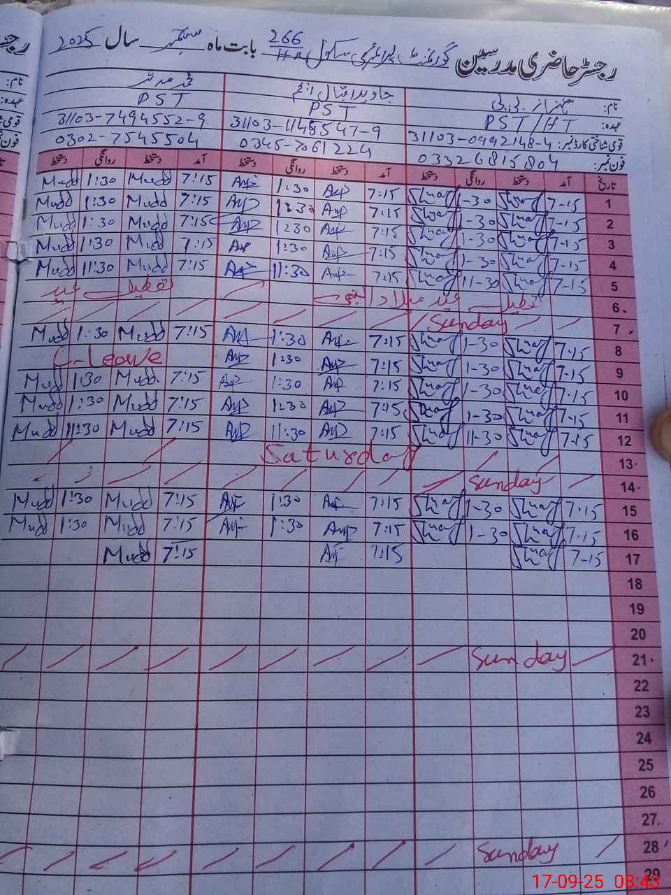 | Name: Sh**** Bi**** Designation: (School Headmaster's/Headmistress's) PST Phone/Cell Number: 03**** |