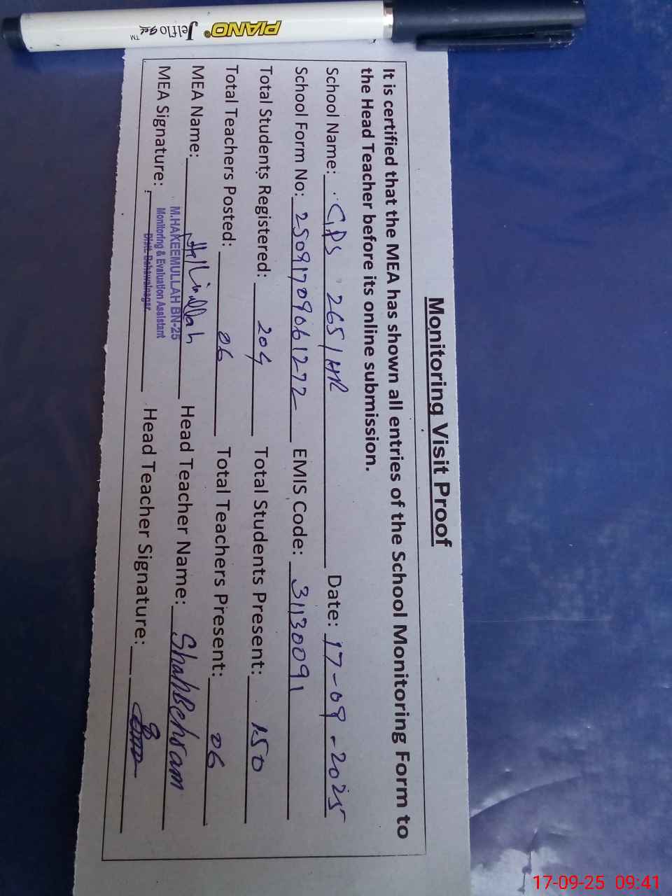 | EMIS Code: 31130091 | Name of School: GPS 265/HR | |||