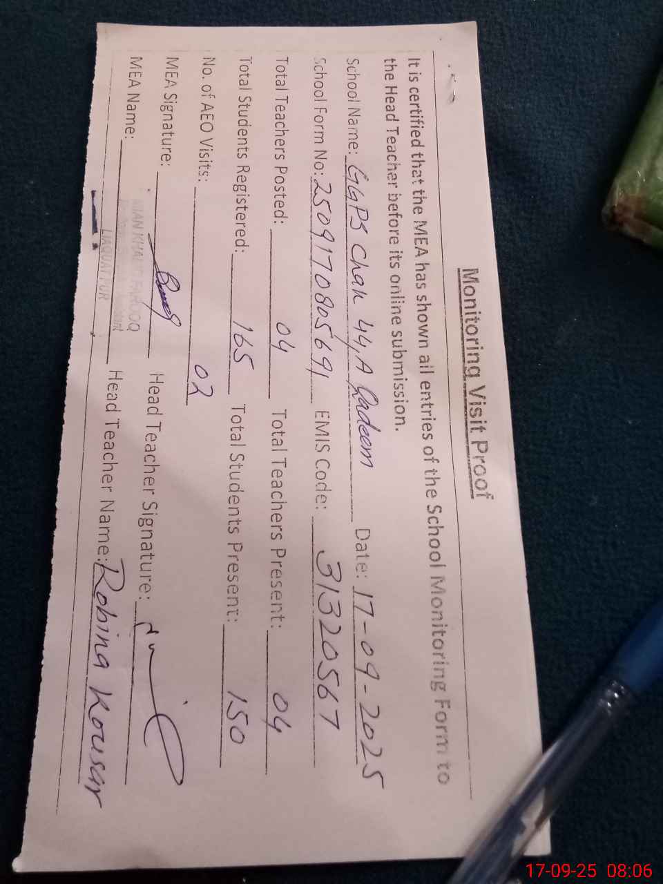 | EMIS Code: 31320567 | Name of School: GGPS CHAK 44/A QADEEM | |||