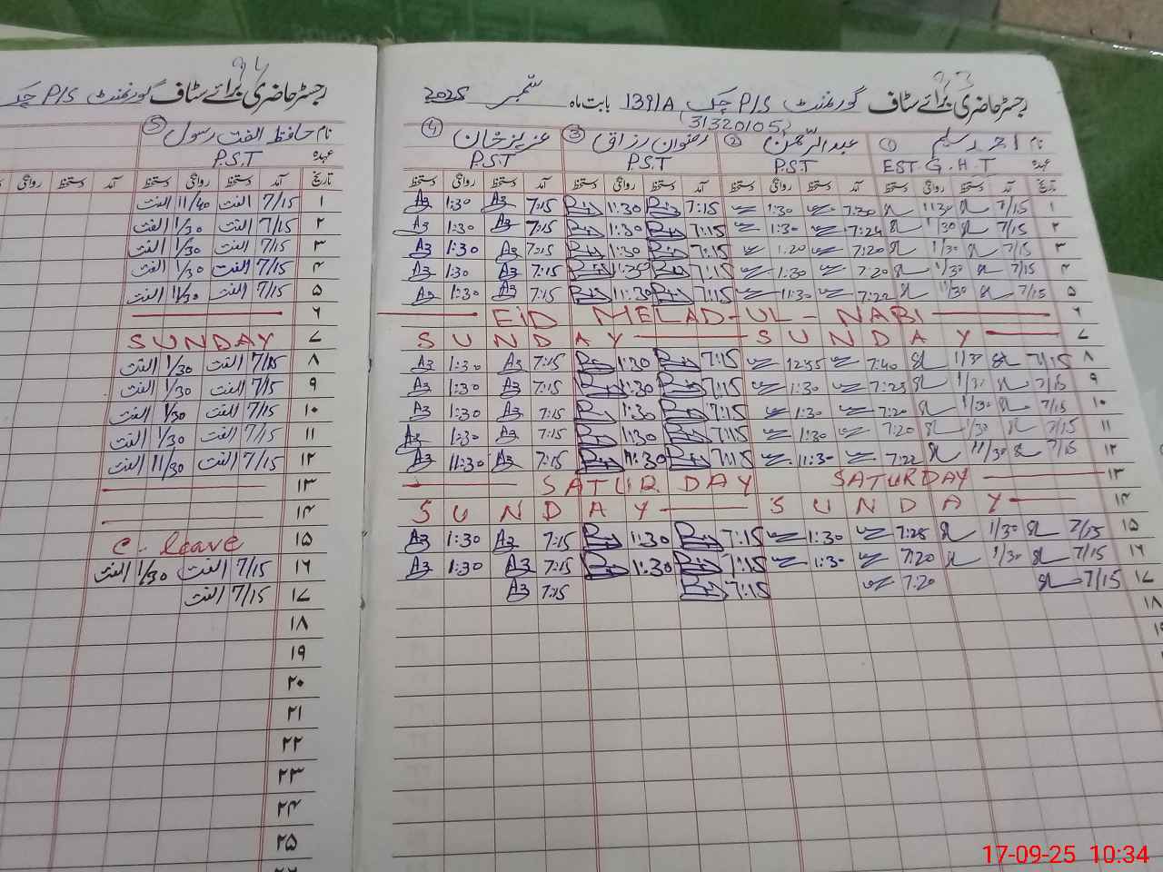 | CNIC | Full Name | Designation | R/C | Absence During Last Calender Month |