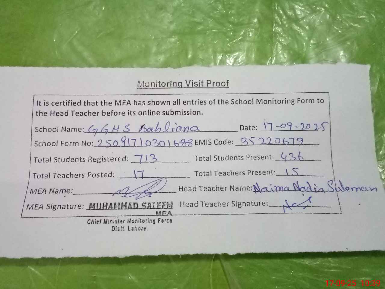 | EMIS Code: 35220679 | Name of School: GGHS BABLIANA | |||